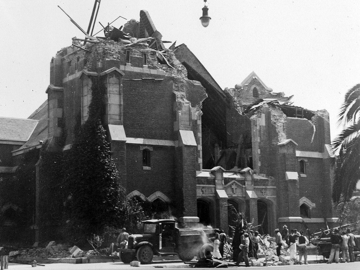 March 10, 1933 / 5:54 pm, pst location: Photo taken 8 days after, on march 18, 1933. The epicenter was offshore, southeast of long beach, california. The long beach earthquake killed about 120 people and caused major damage throughout the region. Recent earthquakes near long beach, california, united states.